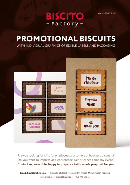 We can print your logo or any other graphic on the biscuits, making them original promotional gifts for everyone – a great way to say thank you or strengthen relationships.